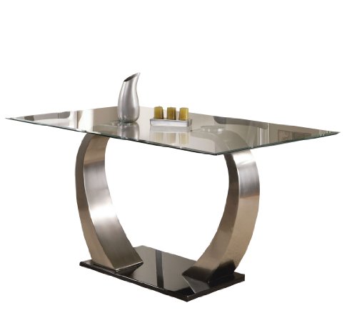 | By Amazon Verified Purchase This review is from: ACME 10090 Camille Dining Table with 8mm Clear Glass (Misc.) First Amazon acted professionally, as always. When the delivery service managed to break the top and not deliver it, then damaged the base slightly, Amazon just sent a whole new top and base, and the others were taken back, problem solved.The table is awesomely beautiful ( a Chinese knockoff of a U.S. made piece that sells for many times the price). The glass is nicely beveled and finished at the edge; the base is a shiny black something that's O.K.. The curved pedestals are brushed satin finished stainless, strong and graceful. The problem with this piece was the on, one side, the the holes in the top of the stainless legs did not match up with the threaded drilled cuts in the round metals receptor which is bonded to the top. One hole even is a little visible beyond the edge of the silver top receiver. I liked the table so much, and didn't want to go through the risk of more shipping damages, that I carefully drilled new holes in the top piece and then used strong stainless... Read more |